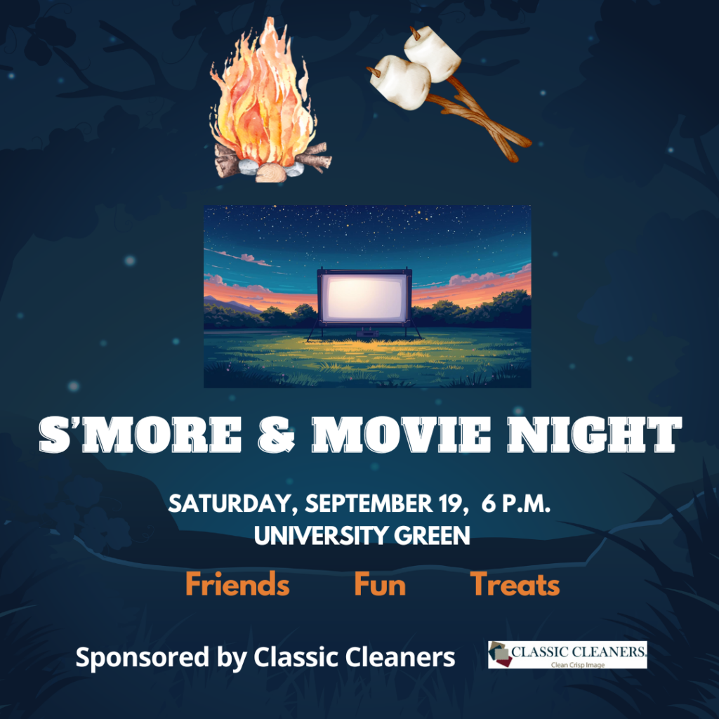 Join us on University Green to enjoy roasting marshmallows around the fire, chat with friends, and enjoy an outdoor movie!